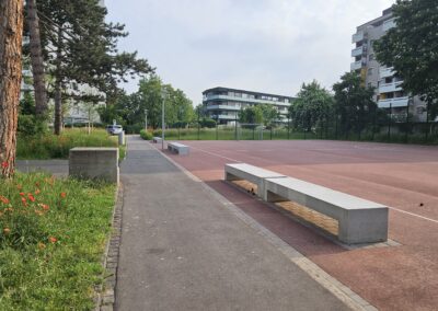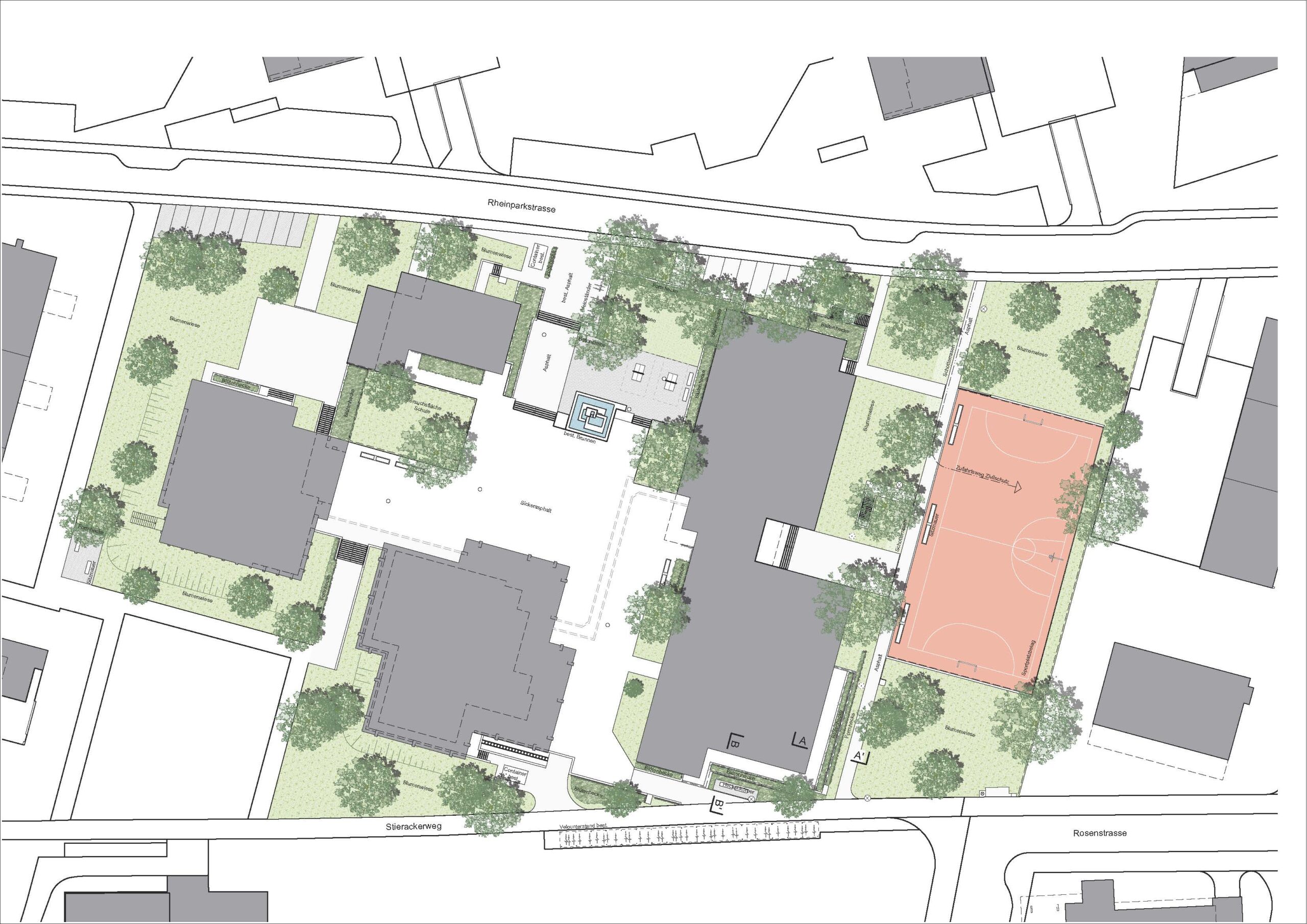 Im Rahmen des Projekts wurde die bestehende Anlage unter Berücksichtigung ihrer ursprünglichen Struktur und Gestaltung überarbeitet und funktional erweitert. Ziel war es, zusätzliche Nutzungen zu integrieren, die den heutigen Anforderungen des Schul- und Freizeitraums entsprechen, ohne den Charakter der Anlage zu verfälschen.