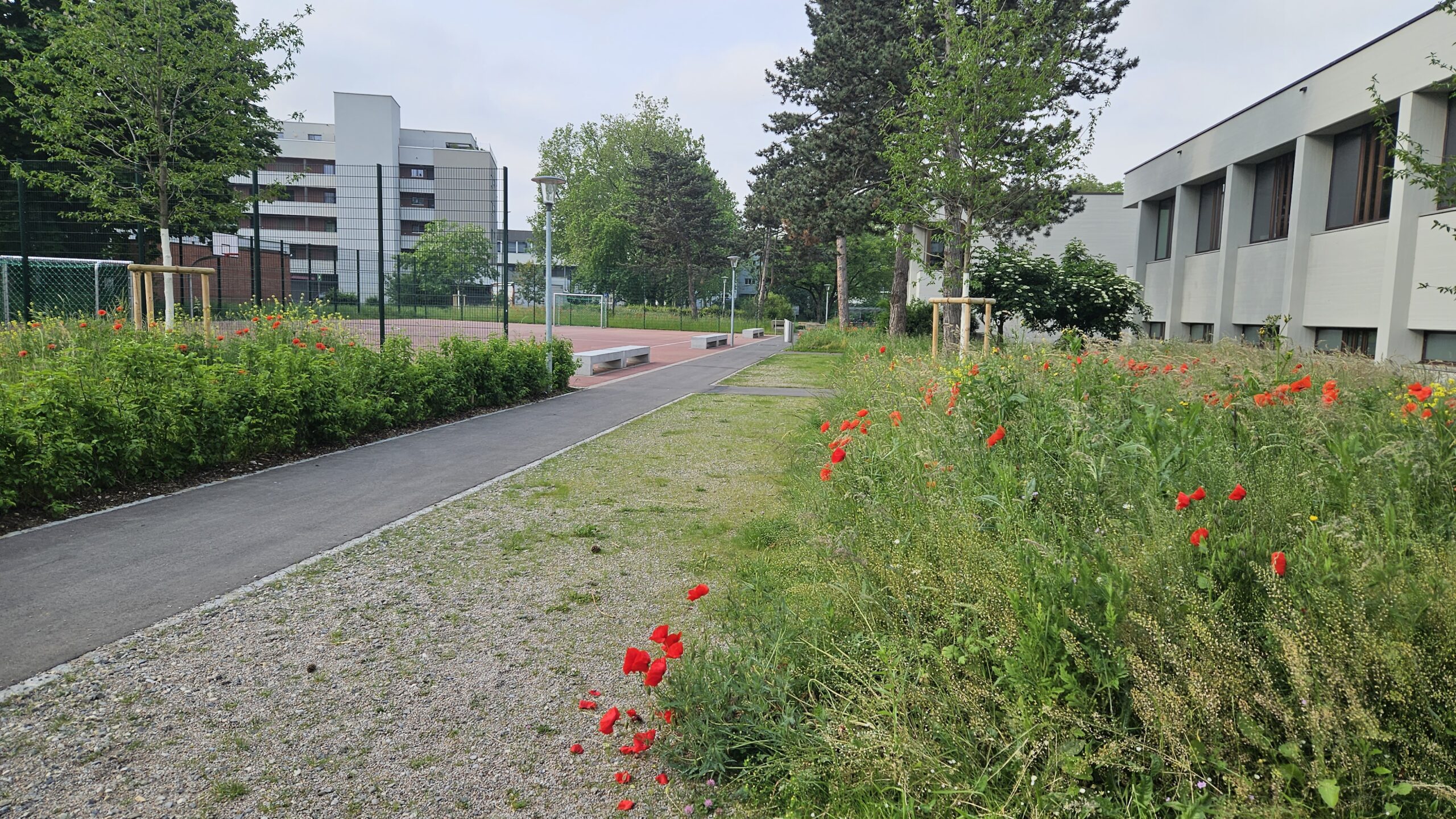Die umgestaltete Schulanlage präsentiert sich heute als funktional vielfältiger, ökologisch aufgewerteter und sozial lebendiger Freiraum, der die Qualitäten der ursprünglichen Anlage bewahrt und zugleich den Anforderungen eines zeitgemässen Schulalltags gerecht wird.