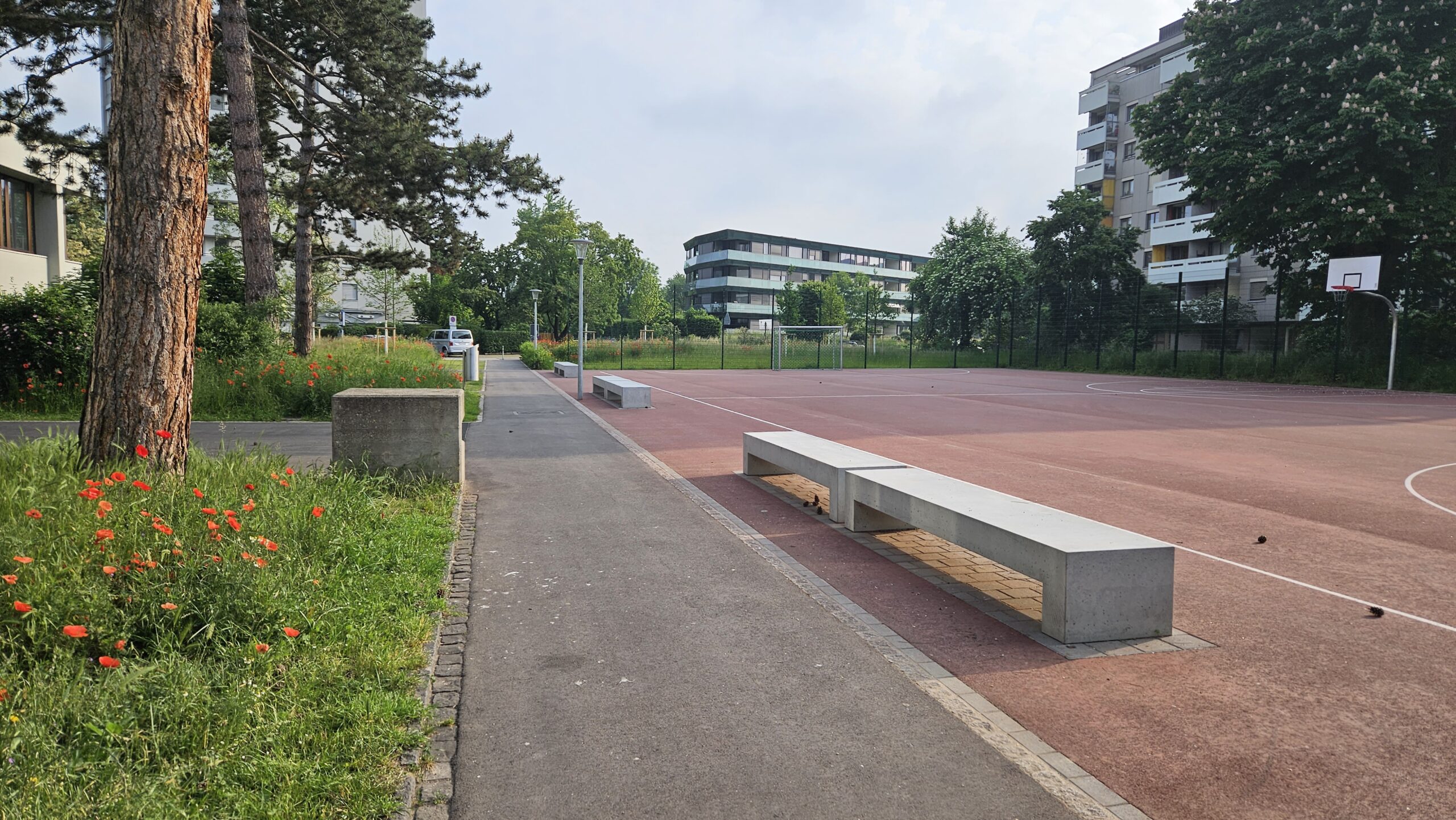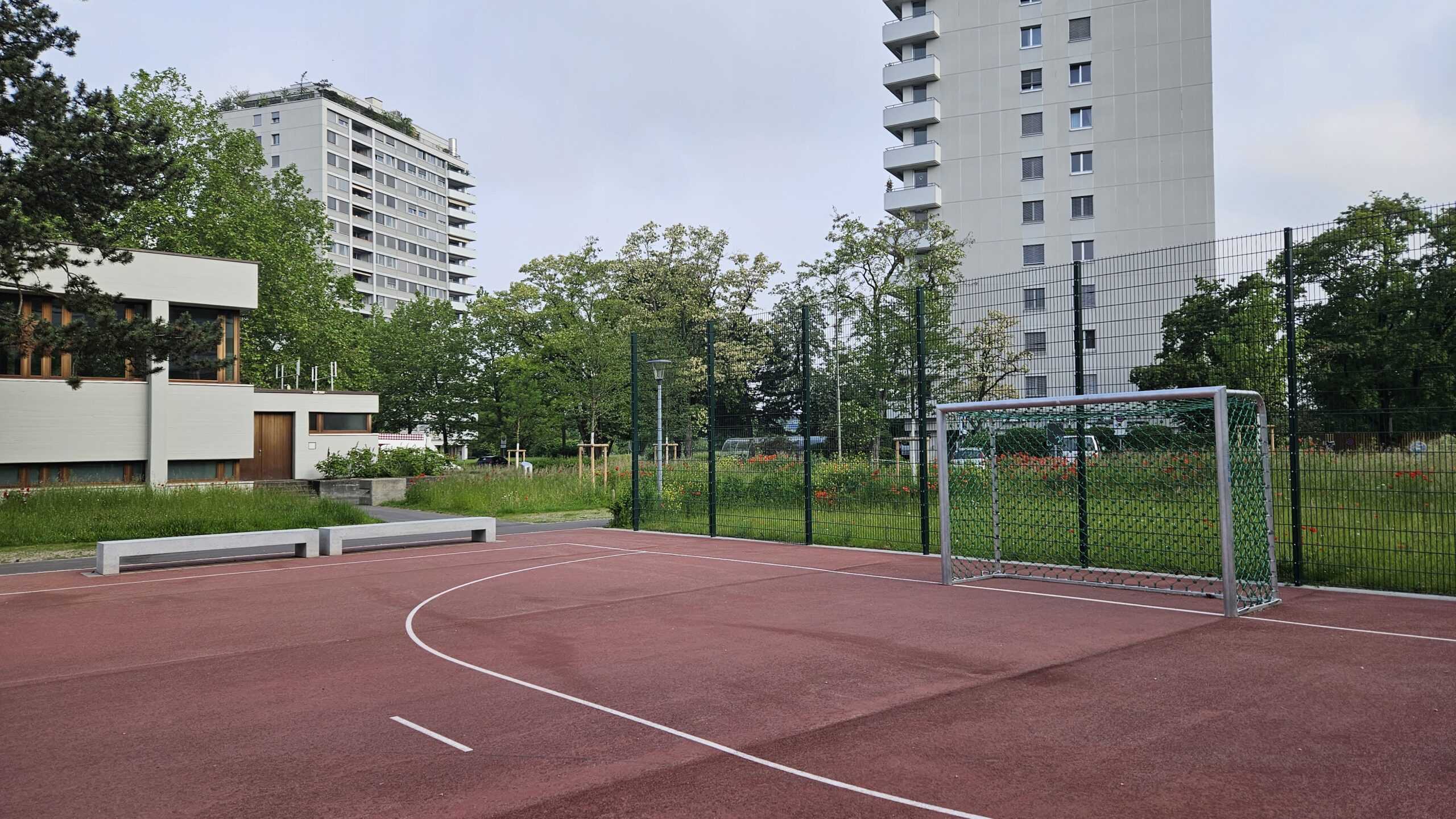 Ein neuer Allwetterplatz ergänzt das bestehende Sportangebot und erweitert die Nutzungsmöglichkeiten sowohl im Schulbetrieb als auch ausserhalb der Unterrichtszeiten. Ergänzend dazu wurden Tischtennistische an zentralen Standorten in die Anlage integriert und fördern informelle Bewegung und soziale Interaktion.