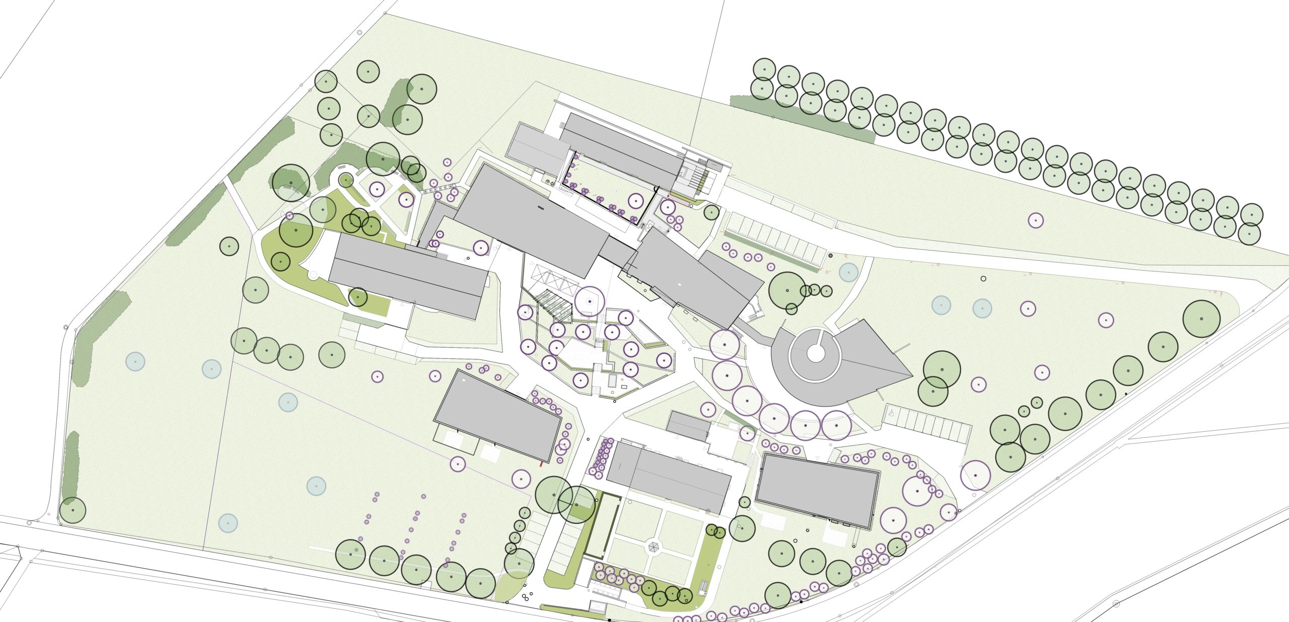 Die offene Gestaltung schafft niederschwellige Begegnungsmöglichkeiten und stärkt das soziale Miteinander. Die gesamte Umgebungsgestaltung orientiert sich an den Prinzipien der Durchlässigkeit, Zugänglichkeit und Natürlichkeit. Sanfte Geländemodellierungen, vielfältige Pflanzstrukturen und sorgfältig gesetzte Blickbeziehungen verbinden Architektur, Gartenräume und Landschaft zu einem stimmigen Ganzen. So entsteht ein Ort, der Erholung, Orientierung und Gemeinschaft gleichermassen fördert – über Generationen hinweg.